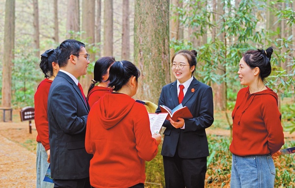 近日,湖南省靖州苗族侗族自治縣人民法院普法小分隊(duì)干警們來到靖州排牙山國家森林公園,向商戶和游客發(fā)放民法典普法手冊。干警們在水杉樹下以案釋法,講解合同履行、食品安全、產(chǎn)品標(biāo)識等法律要點(diǎn),普及防范非法集資、電信詐騙技巧,助力優(yōu)化旅游法治環(huán)境。