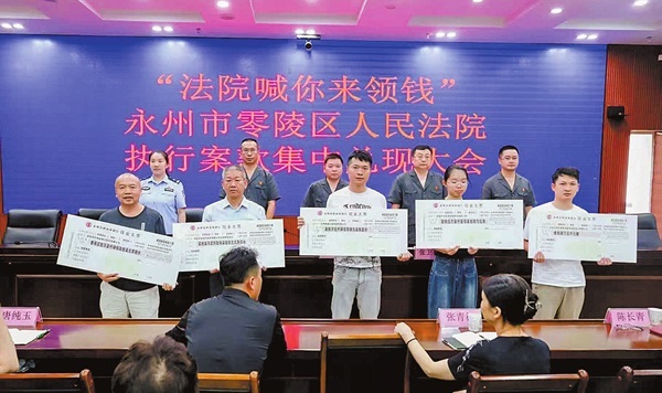 永州市零陵區(qū)法院“法院喊你來領錢”執(zhí)行款兌現(xiàn)活動現(xiàn)場。