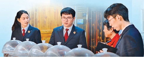 湖南省武岡市檢察院干警走訪鹵菜企業(yè),詢問發(fā)展難題和法治需求。