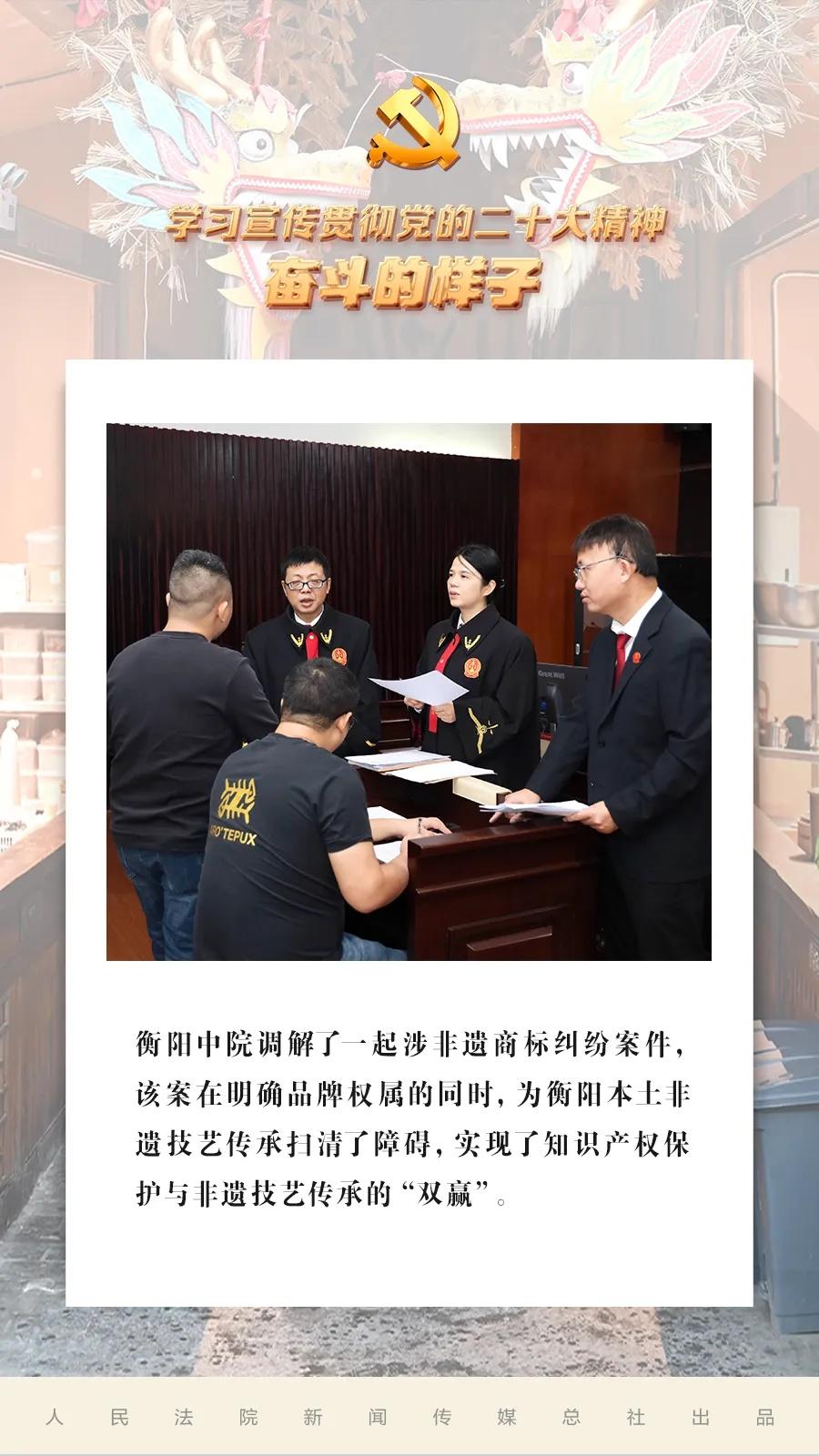 文章來源:最高人民法院、衡陽市中級(jí)人民法院、南岳區(qū)人民法 作者: 時(shí)間:2025-11-05 11:34:26黨的二十大報(bào)告指出,全面建設(shè)社會(huì)主義現(xiàn)代化國家,必須堅(jiān)持中國特色社會(huì)主義文化發(fā)展道路,增強(qiáng)文化自信。作為中華優(yōu)秀傳統(tǒng)文化的重要載體,非物質(zhì)文化遺產(chǎn)凝結(jié)著歷史的記憶,承載著民族的智慧,在湖南衡陽這片沃土上熠熠生輝。近年來,湖南省衡陽市兩級(jí)法院主動(dòng)延伸司法職能,積極構(gòu)建“非遺+司法”保護(hù)新機(jī)制,將法治保障有機(jī)融入文化傳承與發(fā)展的全過程,以司法之力守護(hù)非遺之魂,讓千年非遺在法治的守護(hù)下煥發(fā)新的生機(jī)與活力。